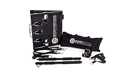 As far as workouts go, this rig comes with an instruction manual while there is also a set of workout videos you can follow along. Each resistance band offers around 30lbs of resistance. In order to get more, just shorten the band by doubling it through the available anchor points.